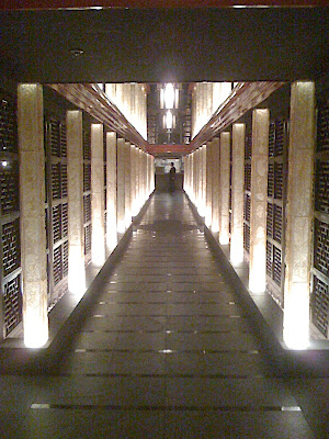 地下一階の入り口をまず入ると長い通路があり、その両脇にその通路に背を向ける形で半個室の席が無数にある。